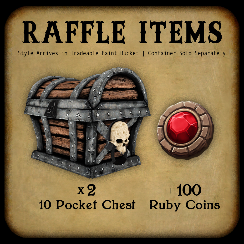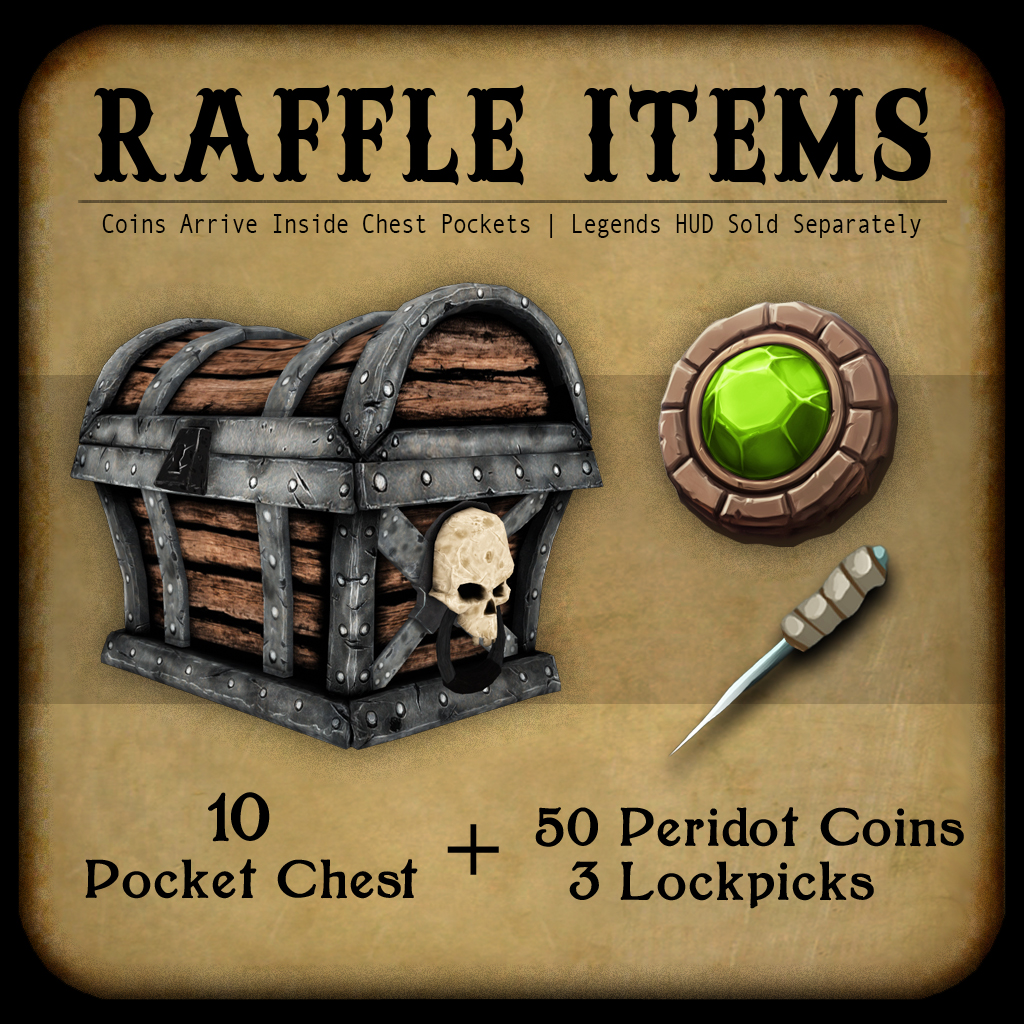 *Note: The raffle chests this month contain 3 Lockpicks, which will also be showing up in some quests soon. These can be used at the Community Chest during any month. IE, if one month you are short a few coins to get a collectible texture, a lockpick may be useful. They never expire, so use them wisely!